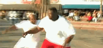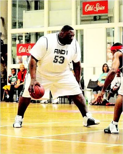 今天的主角名叫特洛伊-杰克逊,绰号“云梯”,身高2米08的他体重340斤,是街球场上的一个超重量级的选手。